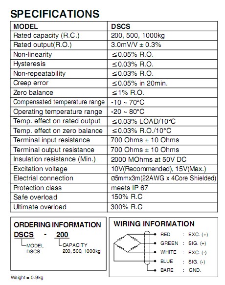 DSCS-200KG傳感器防護(hù)等級(jí)IP 67
