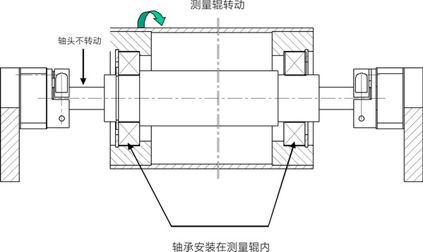 ●測量輥的軸頭不轉動,傳感器提供軸接頭;