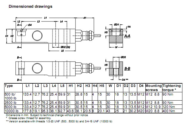 這款力傳感器還可用于測量靜態拉力及壓式力。彎梁式稱重傳感器通過線纜一側的兩個緊固孔安裝。而在線纜的另一側,通過通孔或盲孔將力引入,垂直作用于測力傳感器的中軸線。