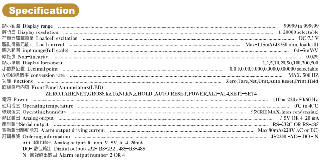 | 臺灣JIHSENSE JS-2200稱重顯示控制器 |