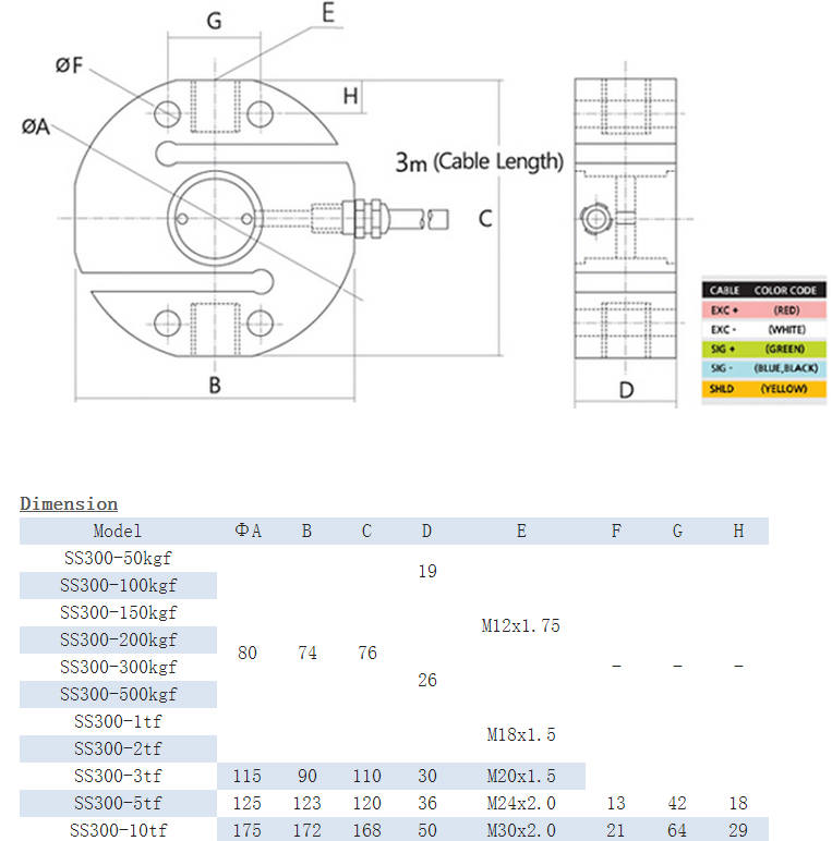 韓國SEWHACNM(世和)SS300稱重傳感器規格和圖紙