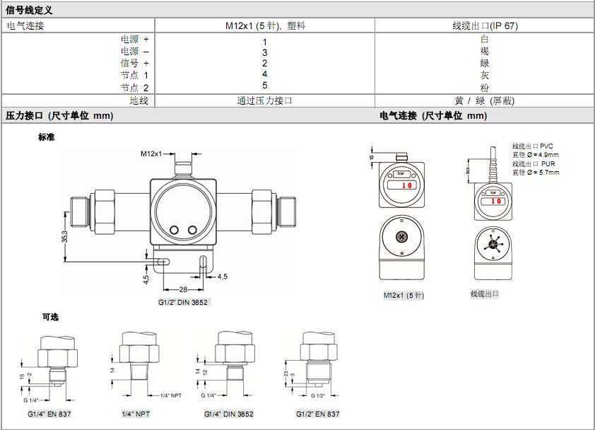 BD SENSORS 壓力變送器采用不同的傳感器技術,結合不銹鋼和多種塑料殼體,適用于幾乎所有工業氣體和液體。我們的工業壓力變送器有多種電氣接口和壓力接口可供選擇,可滿足幾乎所有應用需求。
